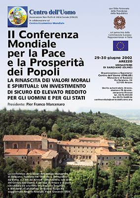 Studiosi di 4 continenti, riunitisi nello storico Monastero di Sargiano presso Arezzo, hanno dato vita alla "Conferenza Ecumenica Mondiale per la Pace e la Prosperità dei Popoli", promossa dall'Associazione internazionale Centro dell'Uomo con la Presidenza di Pier Franco Marcenaro.